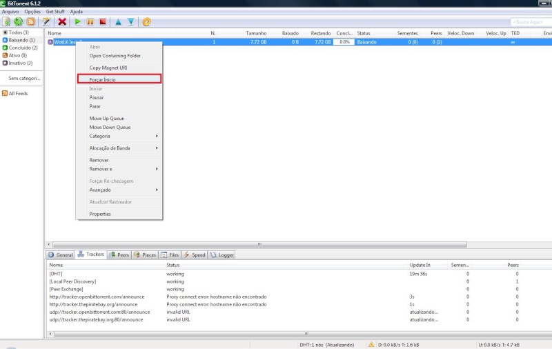 Se o download nao começar automatically, clique com o botao direito no arquivo e depois em início Forçar.